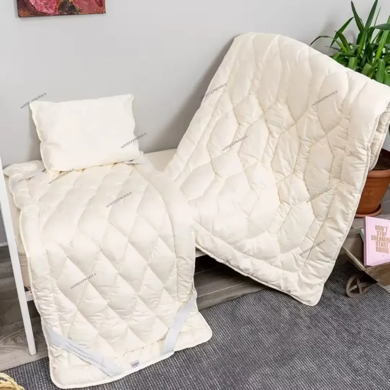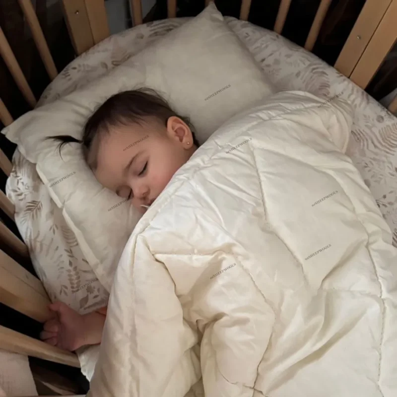 Doğal, sağlıklı ve konforlu bir uyku deneyimi sunan Bebek Yün Yorgan + Alez + Yastık (3’lü Bebek Seti) ile tanışın!