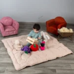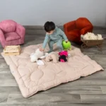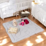 Gri ve vanilya renklerinde sunulan, 110×130 cm ölçülerindeki bu mat, sadece sağlıklı bir oyun alanı değil; aynı zamanda bebeğinizin doğal enerjisini koruyarak huzurlu büyümesine destek olan biyolojik bir kalkandır!