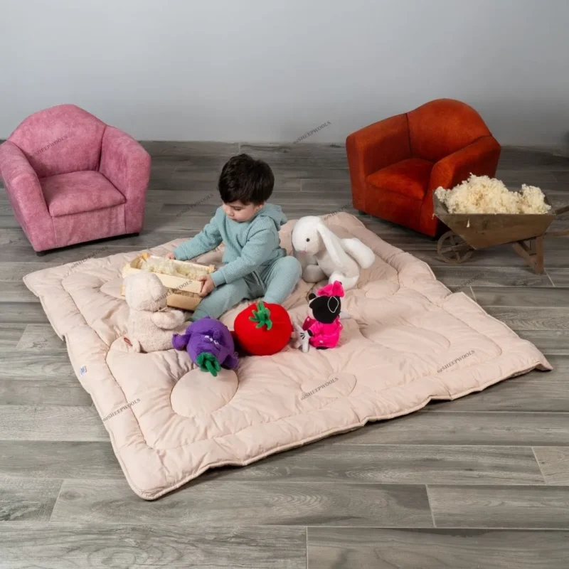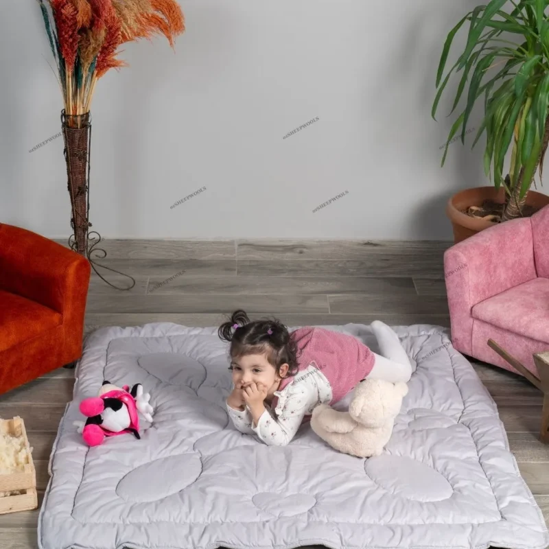 Bebeğinizin Doğal Koruma Kalkanı: %100 Merinos Yün Oyun Matı! 🐑✨