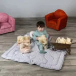Sentetik zeminler, tozu ve bakteriyi hapseder. Ancak %100 doğal merinos yünü, havanın serbestçe dolaşmasını sağlayarak küf ve bakteri oluşumunu engeller. Böylece bebeğiniz alerji risklerinden uzak, sağlıklı bir ortamda oyun oynar.